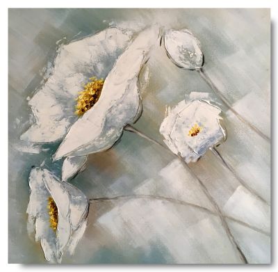 Schilderij bloemen wit 75 x 75, prachtige schilderijen - Artello.nl